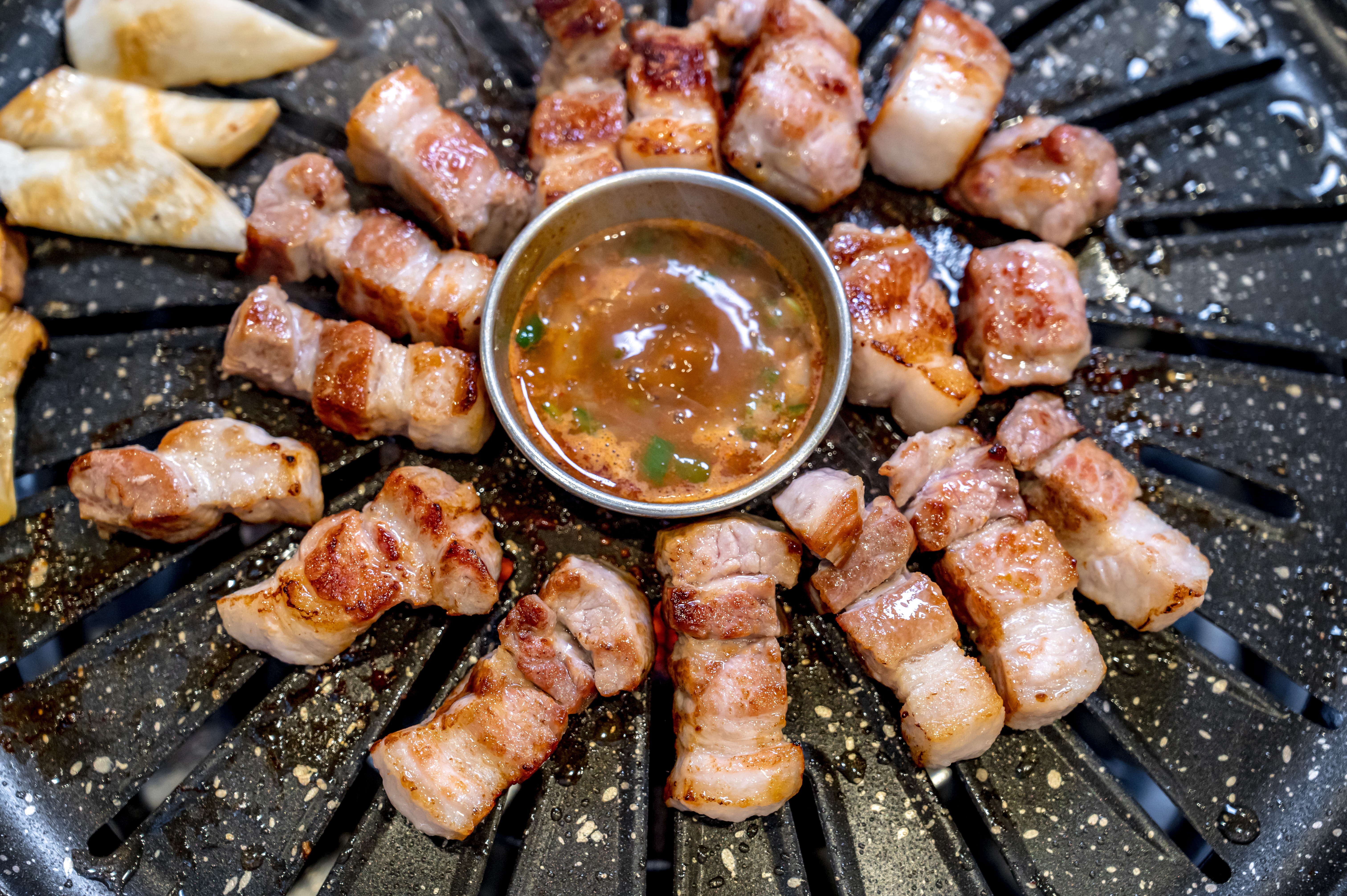 오오.. 확실히 생삼겹살이라서 냉동이나 이베리코랑은 또 다른 느낌이었어요. 뒤집었을떄 제대로 익은 뒷면의 모습이 어찌나 뿌듯하던지 이대로 들고 먹고 싶을 정도로 맛있게 구워지는 냄새도 좋았어요.