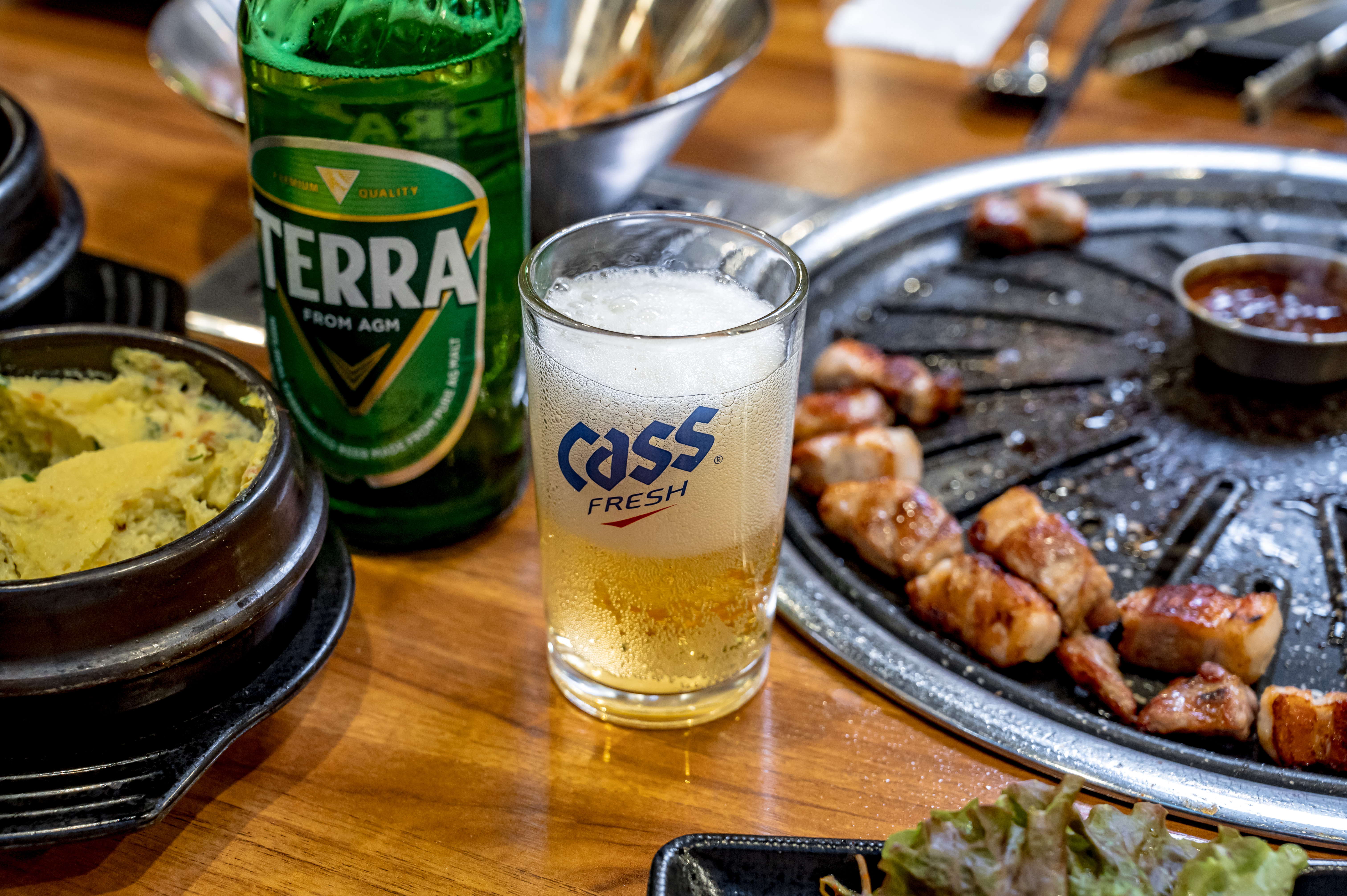 오늘은 우울함 날려버릴 수 있게 제대로 달려보자는 생각으로 소맥을 선택했어요. 고기 굽는 동안 시원하게 한잔 말아버렸어요.